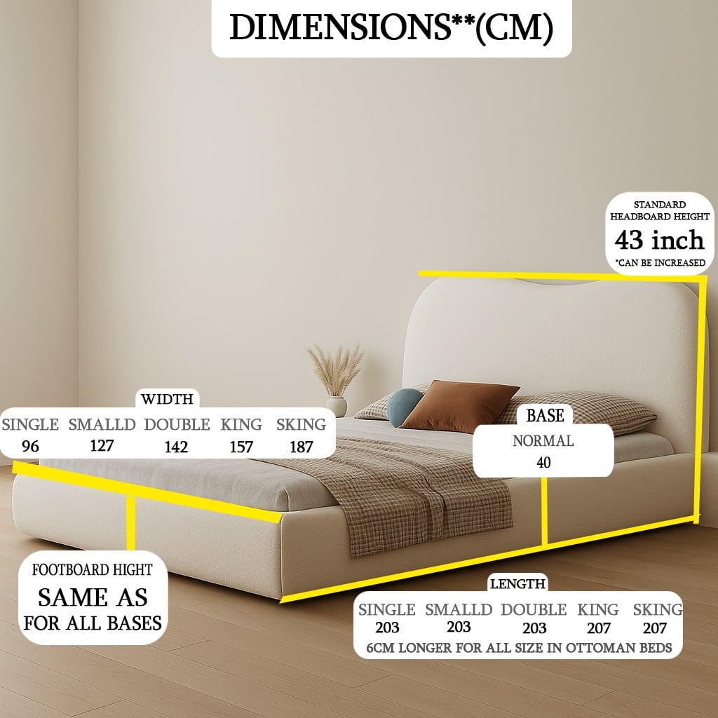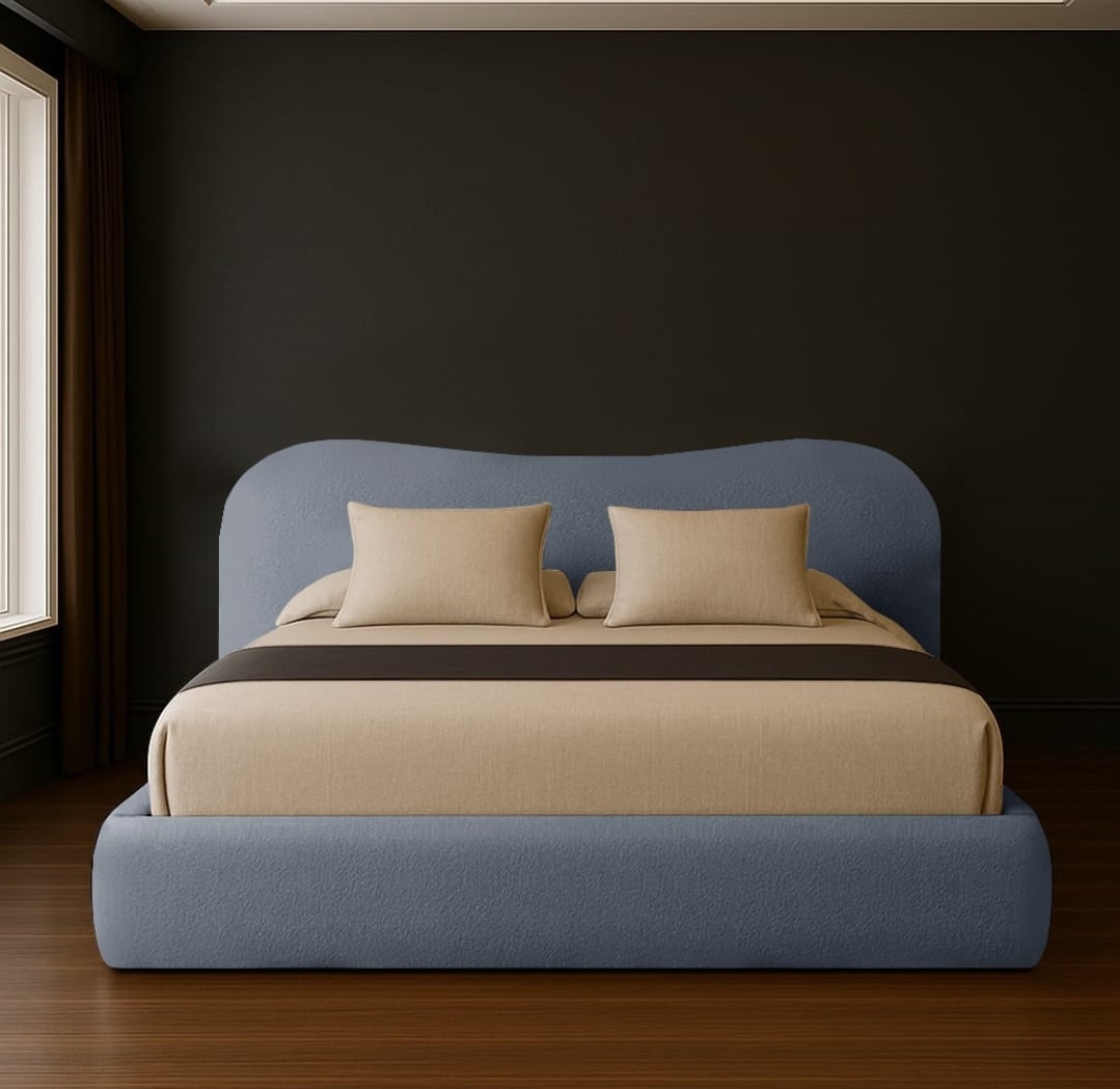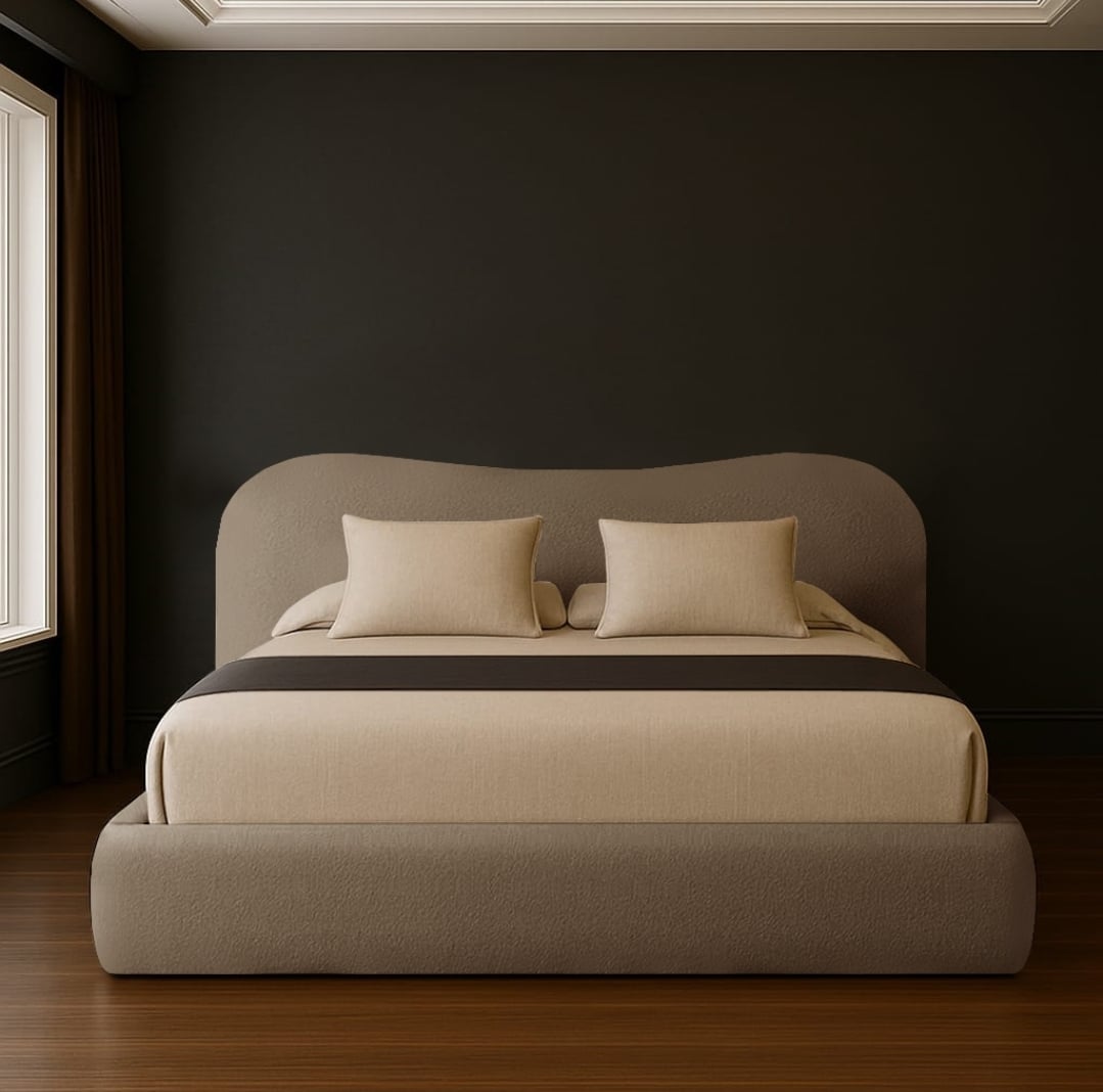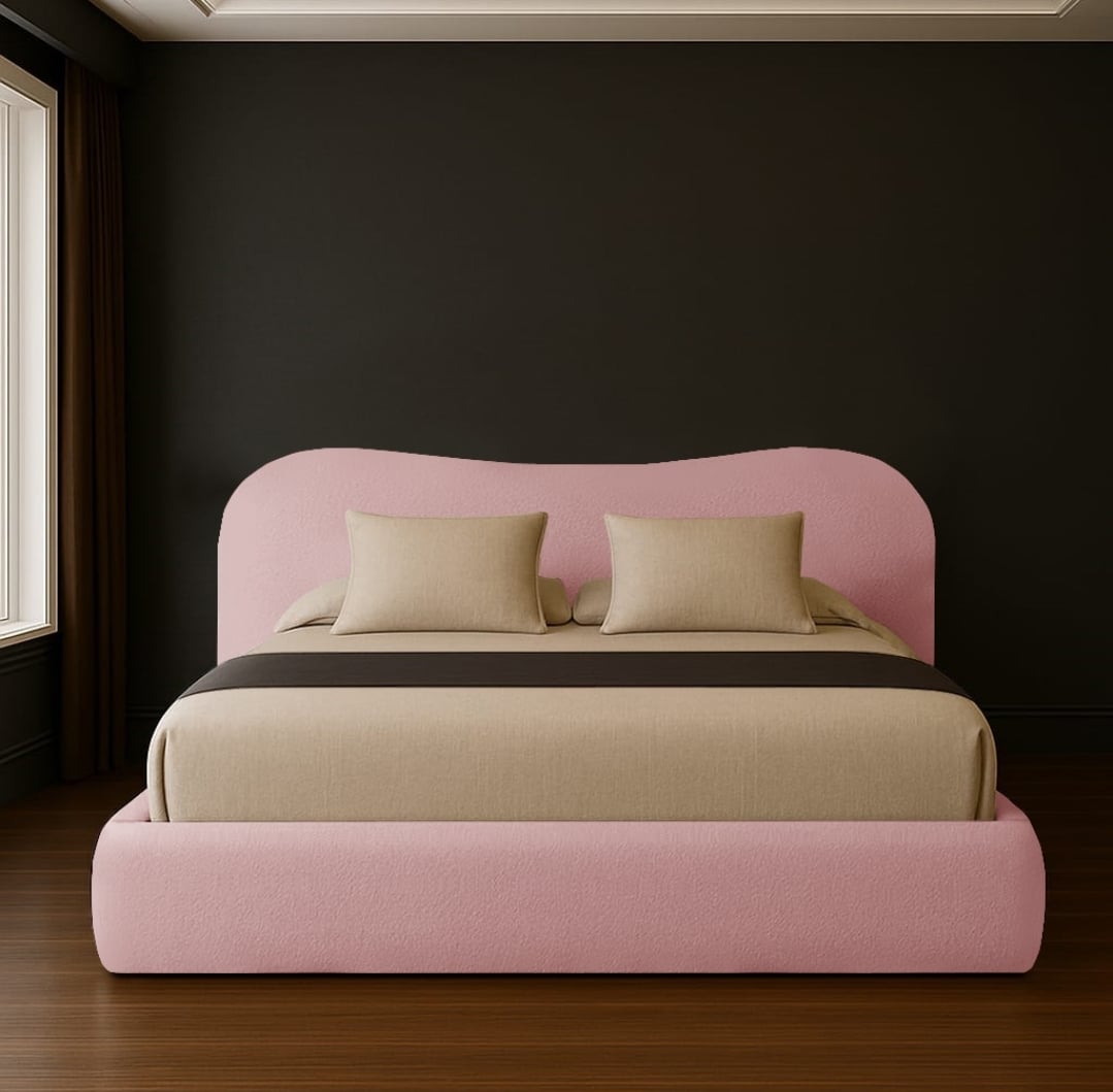Our curve teddy boucle bed features inviting curved silhouette, upholstered with sumptuous ivory boucle fabric for a chic, cosy place to relax.