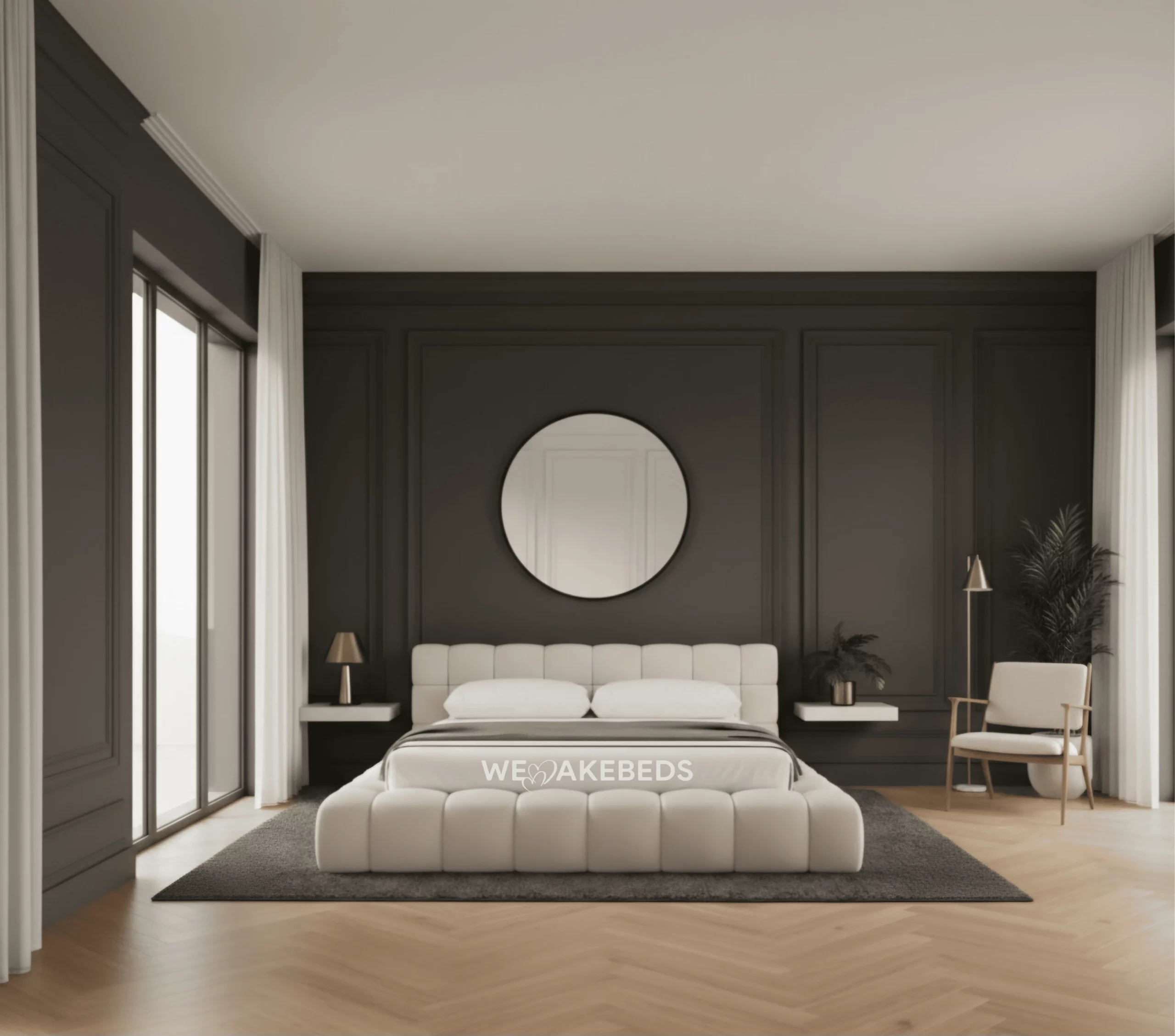The Halo Haven Bed radiates serene elegance with its softly rounded silhouette and plush, upholstered frame. Each padded segment is meticulously tailored to create a cloud-like appearance that invites pure relaxation. Its low, grounded design complements the modern luxury aesthetic, blending effortlessly with neutral tones and refined interiors. A true centerpiece for restful sophistication, the Halo Haven turns your bedroom into a tranquil retreat.