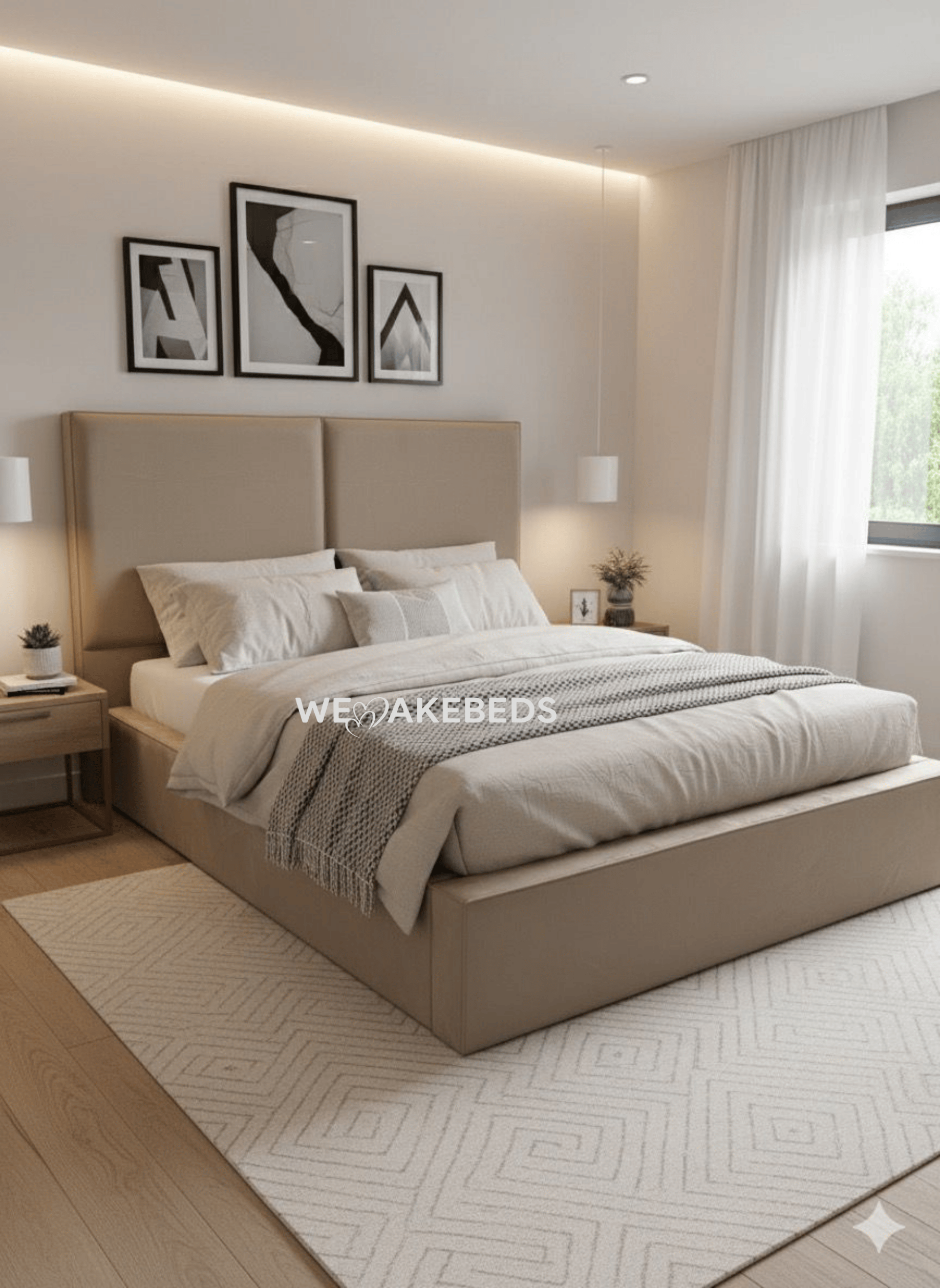 Experience pure comfort and minimalist elegance with The Serenity Bed. Crafted with a sleek, contemporary design, this bed features a soft upholstered frame and a tall, padded headboard that brings sophistication and warmth to any bedroom. The neutral beige tones blend effortlessly with modern or classic interiors, creating a calm and inviting retreat. Perfectly balanced with clean lines and plush detailing, The Serenity Bed is designed for both comfort and style — making it the centerpiece of a truly restful space.